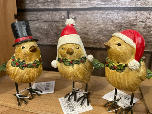Oiseaux de Noël en résine dans des chapeaux